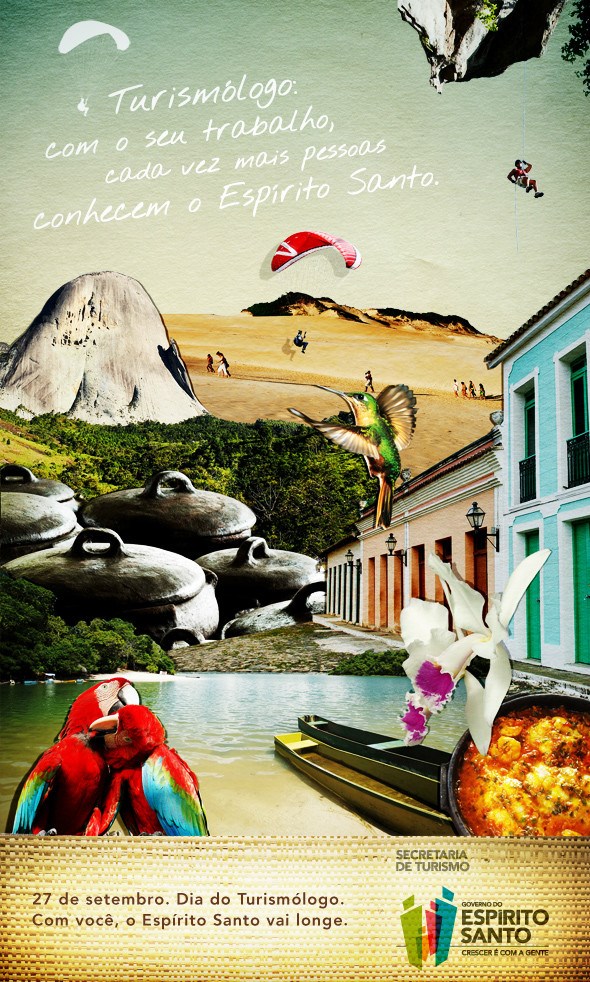 A Secretaria de Estado do Turismo fez esse anúncio, que foi publicado nas edições de hoje (27/09) dos jornais A Gazeta e A Tribuna especialmente para comemorar a data. Parabéns a todos os que trabalham para desenvolver o turismo no Espírito Santo.