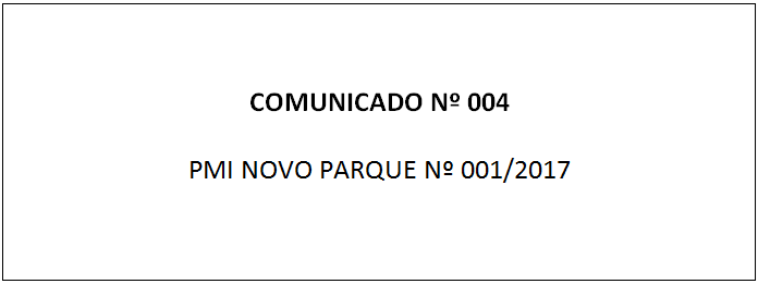 Comunicado referente ao Edital PMI SETUR nº 01/2017 - NOVO PARQUE