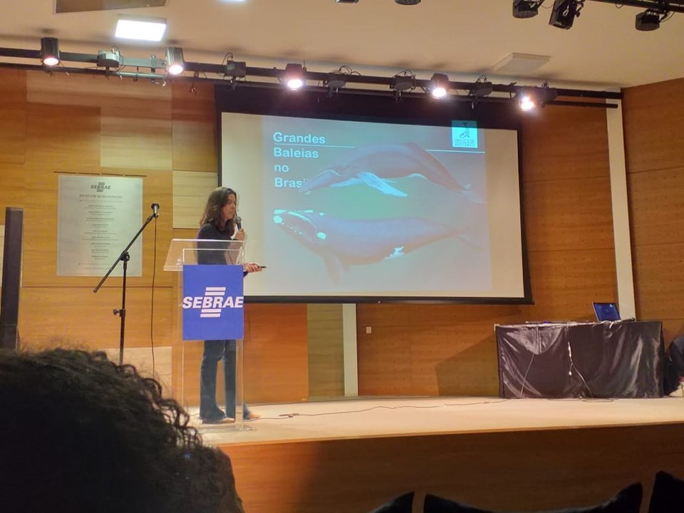 A abertura contou com a presença da diretora de Pesquisa do Instituto Australis, Karina Groch que falou sobre os “Desafios de Conservação das Baleias Franca em Santa Catarina: Turismo de Observação e Monitoramento em Área Portuária”.