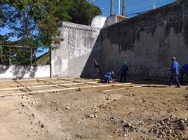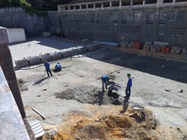As obras de pavimentação externa do prédio, recuperação da fachada, da rede elétrica, iluminação e climatização estão em andamento.