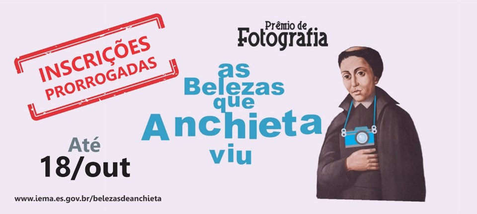 O prazo de inscrição para o concurso de fotografia “As belezas que Anchieta viu” foi estendido até o dia 18 de outubro. O objetivo é divulgar a história do Padre José Anchieta nas terras capixabas mostrando, por meio de fotos, os locais e as belezas naturais do caminho que ele percorria entre a capital Vitória e o município de Anchieta, onde está localizado o Santuário. A inscrição é gratuita.