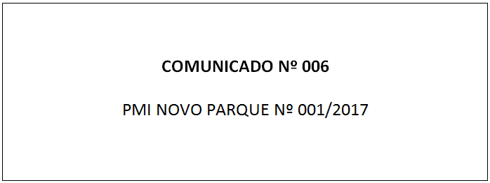 Comunicado referente ao Edital PMI SETUR nº 01/2017 - NOVO PARQUE