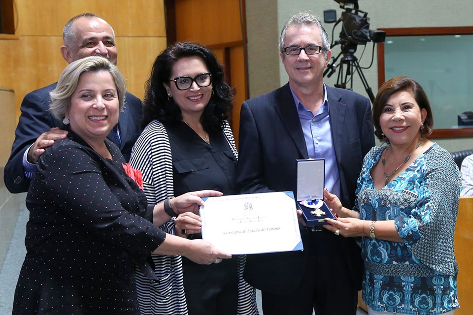 A Secretaria Estadual de Turismo (Setur) foi homenageada na Assembléia Legislativa do Espírito Santo na ultima quarta-feira (6). Durante a Sessão Solene em homenagem aos Profissionais do Turismo do Estado do Espírito Santo realizada pela deputada Luzia Toledo, o secretário de Estado do Turismo, Nerleo Caus, recebeu em nome da Setur a comenda Júlio Biancucci, em homenagem a todo trabalho realizado pela secretaria em prol do turismo capixaba. Também foram homenageados o ex-secretário Estadual de Turismo, José Sales Filho, e a gerente de Marketing da Setur, Carla Rezende Bastos.