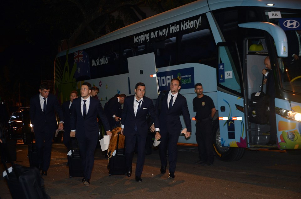Após 22 horas de viagem, assim que desceram do ônibus os integrantes da delegação australiana seguiram direto para os quartos do hotel. O técnico Ange Postecoglou e o capitão do time, Mile Jedinak, no entanto, ficaram para receber as homenagens do governador e sua comitiva.