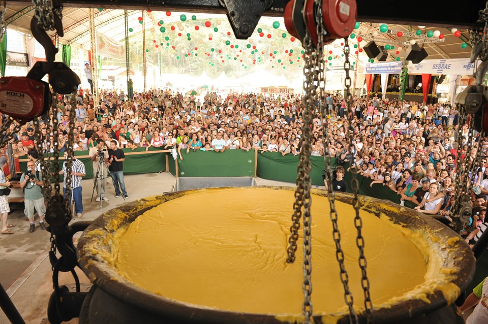 Outro gigante que chama a atenção no evento é o queijo de 1.200 quilos, feito por voluntários da Associação dos Agropecuaristas de Venda Nova (Aagrope), que desfila pelas ruas da cidade em uma carreata.