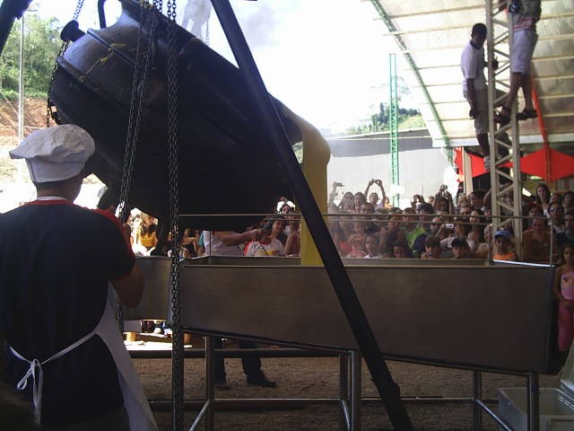 Outro gigante que chama a atenção no evento é o queijo de 1.500 quilos, feito por voluntários da Associação dos Agropecuaristas de Venda Nova (Aagrope), que desfila pelas ruas da cidade em uma carreata.