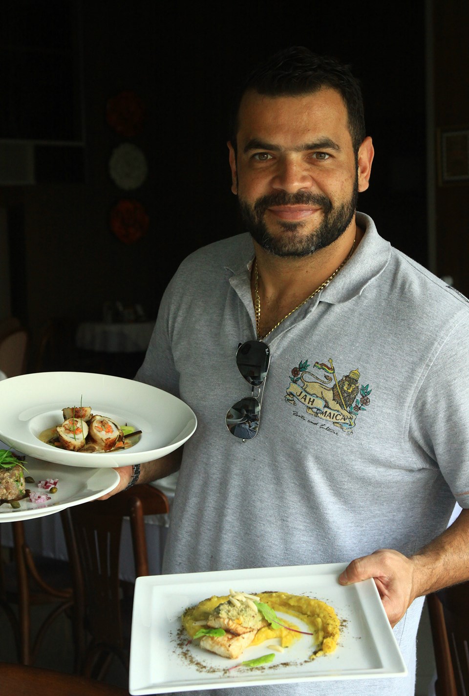 Pratos Principais: Lombo de dourado com risoto de banana e crocante de coco | Costelinha suína ao molho de abacaxi com mousseline de aipim