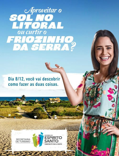 A partir deste sábado (08), começa a ser veiculada uma nova campanha nacional de divulgação do Espírito Santo como destino turístico, desta vez com foco na mídia eletrônica (canais de tevê abertos e por assinatura e internet). A campanha é uma ação do Governo do Estado, por meio da Secretaria do Turismo (Setur) e da Superintendência de Comunicação (Secom).