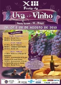 O Governo do Estado, por meio da Secretaria de Estado de Turismo (Setur), divulga a 13ª Festa da Uva e do Vinho, nos dias 06, 07 e 08 de agosto, em Santa Teresa, município que faz parte da Rota Caminhos do Imigrante.