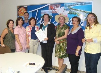 A Secretaria de Estado do Turismo (Setur) recebeu, nesta quarta-feira (04), uma cópia da Carta da Paisagem - em prol da valorização da paisagem cultural e natural do Espírito Santo. O documento foi entregue à subsecretária, Flávia Cysne, por representantes do Instituto Capixaba de Pesquisa, Assistência Técnica e Extensão Rural (Incaper), Maria das Dores Perim e Fábio Lopes Galvão; da Prefeitura Municipal da Serra, Berenice Tavares; e da Câmara Municipal de João Neiva, Fortaleza; além das gerentes e da técnica da Setur, Angela Modolo (Estudos e Negócios Turísticos), Márcia Abrahão (Gestão do Turismo) e Vânia Chiabai, respectivamente.